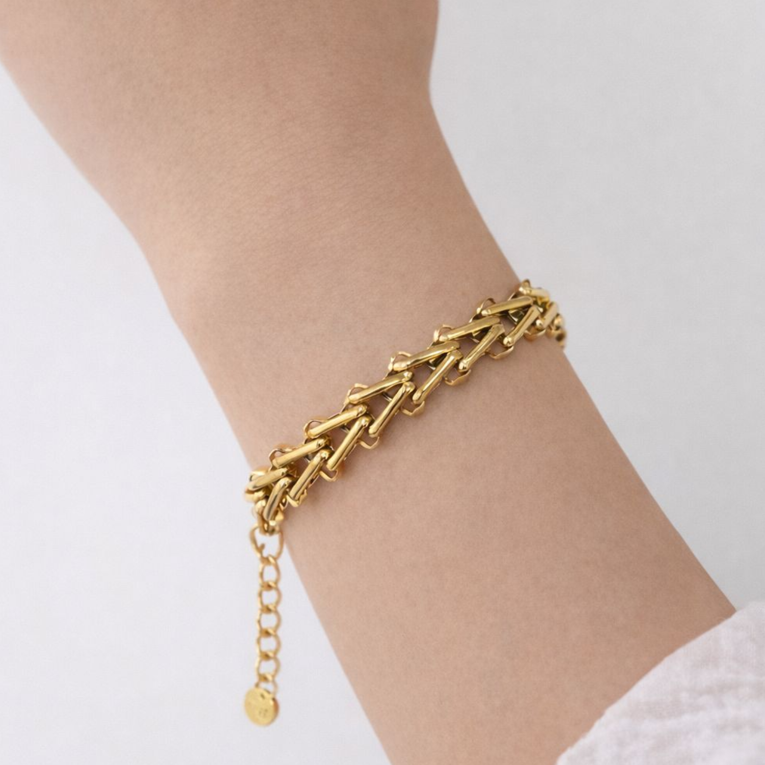 A 316 18K real gold plated stainless steel PVD coated thorn pattern bracelet. Strong luxury aesthetic. Enhance your beauty pairing with both ethnic and western attire. (Unisex)