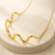 A 304 18K real gold plated stainless steel PVD coated flowing wave pendant necklace. Elegant fluid design. Perfect for styling in both jeans and saree to give an elegent look.